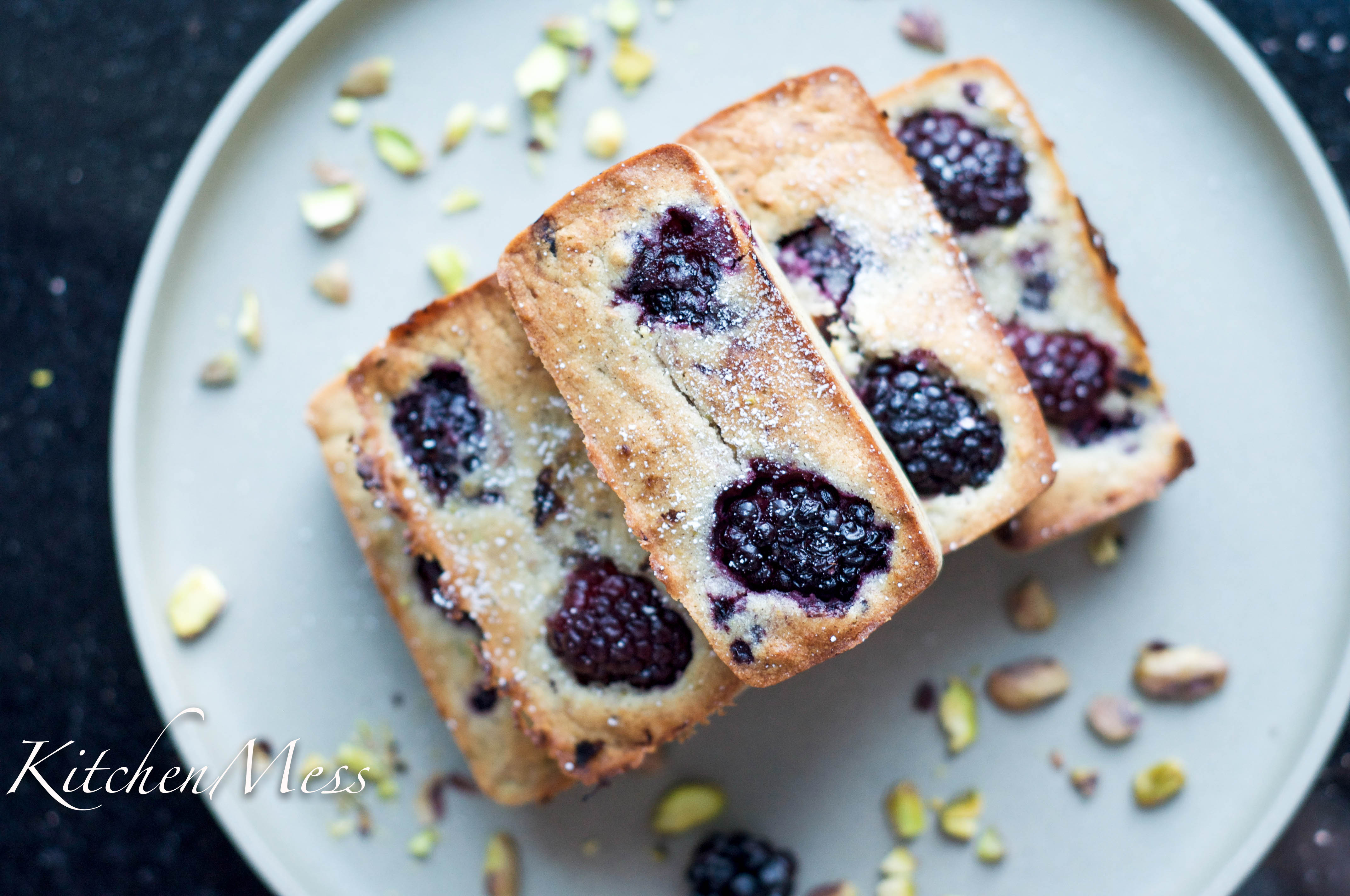Since having left Paris not too long ago, I’m still going through a financier-crazed phase. This time I wanted to go real lush and experimented with blackberries, pistachios, and a smudge of banana.